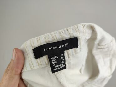 Spodnie damskie Atmosphere w kolorze granatowym, z prostymi nogawkami. Zapinane na zamek błyskawiczny i guzik, z dwoma guzikami ozdobnymi na pasie. Posiadają dwie kieszenie boczne. Wykonane z miesz...