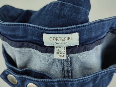 Ciemnoniebieskie jeansy damskie z wysokim stanem od Cortefiel, idealne do codziennych stylizacji. Wyposażone w zapięcie na dwa srebrne guziki z przodu, które dodają im charakteru. Spodnie posiadają dwie kieszenie z tyłu, co zwiększa ich praktyczność. Wysoki stan zapewnia komfort noszenia i estetyczne dopasowanie do sylwetki. Klasyczny design sprawia, że są łatwe do połączenia z różnymi elementami garderoby, od casualowych t-shirtów po eleganckie bluzki.