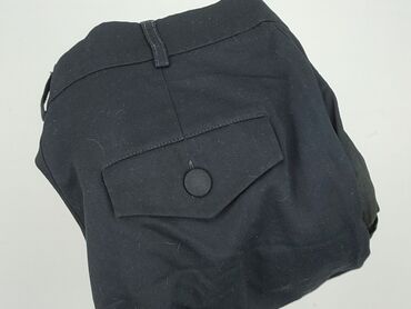 Czarne bermudy damskie - Klasyczny krój do połowy kolana - Zapięcie na suwak i guzik - Szlufki na pasek - Dwie skośne kieszenie z przodu - Dwie kieszenie z tyłu (jedna zapinana na guzik, druga z p...