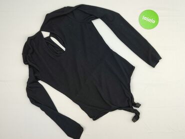 Czarne body damskie z długim rękawem, charakteryzujące się wycięciem na dekolcie i ozdobnym wycięciem na plecach. Model ten jest wszechstronnym elementem garderoby, który może być noszony zarówno samodzielnie, jak i jako baza pod inne ubrania. Idealne do tworzenia stylizacji na co dzień lub na specjalne okazje, zapewniając dopasowany krój i swobodę ruchów. Wygodne zapięcie na dole ułatwia użytkowanie. Produkt odpowiedni dla kobiet poszukujących eleganckiego i praktycznego rozwiązania w swojej szafie.