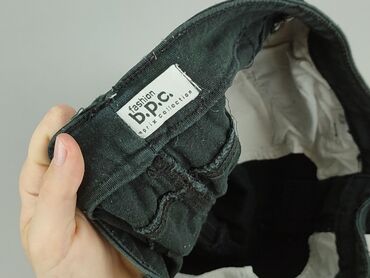 Jeansy Capri dla kobiet w kolorze czarnym, marki B.P.C., rozmiar 40. Posiadają dekoracyjne wycięcia w kształcie łusek na zakończeniach nogawek. Standardowy fason z pięcioma kieszeniami i zapięciem na guzik oraz zamek. Idealne do codziennych stylizacji.