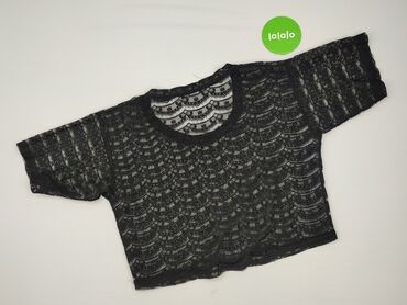 Bluzka damska Atmosphere - Kolor: czarny - Krój: luźny, zaokrąglony dół - Rękaw: krótki - Dekolt: półokrągły z koronkową wstawką na ramionach i panelu przy dekolcie; ozdobna tasiemka z okrągłymi e...