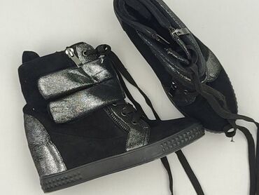 Sneakersy damskie na koturnie RARLON - Rozmiar: 37 (oznaczenie na podeszwie) - Kolor: grafit/ciemna szarość z połyskiem - Cholewka: elastyczna siateczka tekstylna zdobiona drobnymi kryształkami i ...Stan: