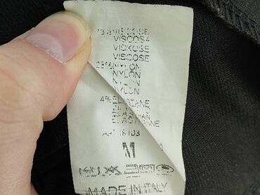 Spodnie damskie w paski – Made in Italy, rozmiar M - Wzór: wąskie pionowe paski w kolorach granatowym, musztardowym i białym - Krój: zwężane nogawki, mankiety na dole, średni stan - Zapięcie: guzi...