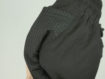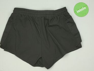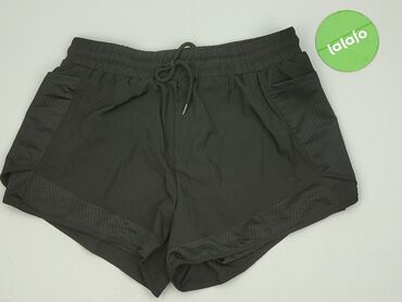 Damskie szorty sportowe – czarne - Rozmiar: M (z metki) - Materiał: 80% poliamid, 20% elastan – lekki, elastyczny, szybkoschnący - Krój: luźny, z zaokrąglonymi bokami i lekkim marszczeniem - Pas: ...