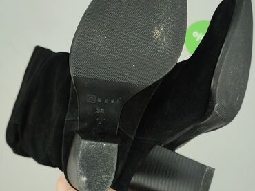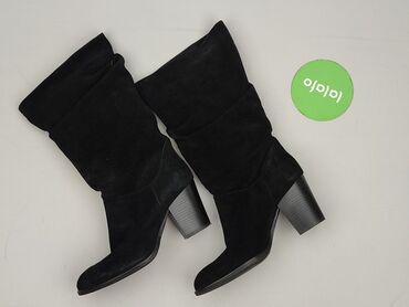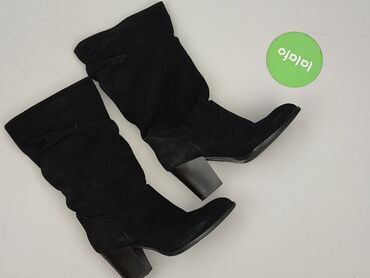 Eleganckie, uniwersalne kozaki idealne do sukienek i spodni; wygodny, grubszy obcas zapewnia komfort na co dzień. Na spodzie oznaczenie producenta: Messei, rozmiar 38.