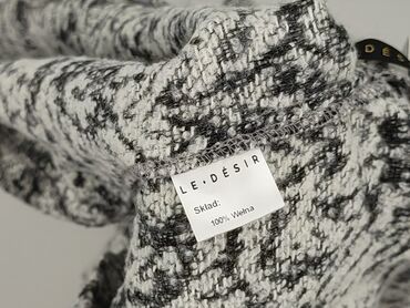Czarne i białe ponczo marki Le Désir z wzorzystym materiałem, wykonane w 100% z wełny. Ponczo ma swobodny krój, idealny do noszenia na co dzień. Materiał jest gruby i zapewni ciepło.