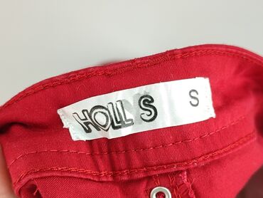 Czerwone jeansy damskie marki HOLLS. Spodnie o dopasowanym kroju, zapinane na zamek błyskawiczny i guzik. Posiadają klasyczne pięć kieszeni: dwie z przodu, dwie z tyłu oraz jedną małą kieszonkę na monety. Wykonane z materiału imitującego dżins. Nitowane detale na kieszeniach dodają im charakteru. Idealne do codziennych stylizacji, mogą być noszone zarówno z casualowymi t-shirtami, jak i bardziej eleganckimi bluzkami.