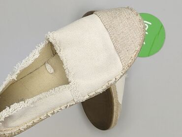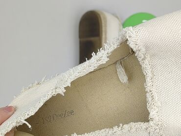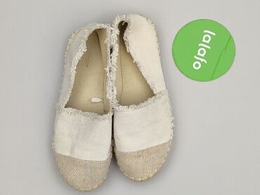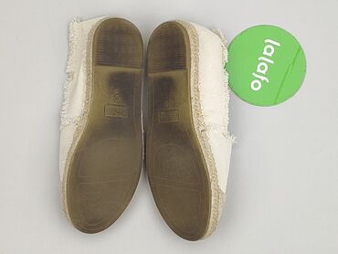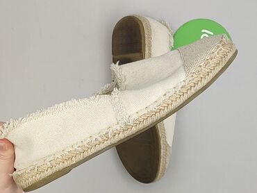 Białe espadryle damskie, rozmiar 39. - Materiał cholewki: płótno/bawełna - Nosek wzmocniony jutą - Podeszwa: guma z bieżnikiem - Wycięta, wsuwana konstrukcja bez zapięcia - Dekoracyjne przyszycia n...