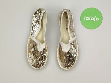 Damskie espadryle Graceland - Rozmiar: 39 (oznaczenie na podeszwie) - Kolor: jasny beż/krem z metalicznym, srebrzystym połyskiem - Cholewka: pleciona, w jodełkę; obszycia i lamówki w kolorze ecru ...