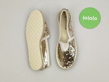 Złote slip‑ony damskie Seasons - Rozmiar: 39 (oznaczenie na podeszwie) - Model wsuwany, z elastycznymi wstawkami po bokach ułatwiającymi zakładanie - Cholewka o delikatnym, połyskującym wykończeni...