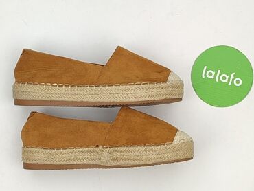 Espadryle damskie z ozdobnymi kamieniami – rozmiar 39 - Kolor: karmelowy/brązowy - Cholewka: zamszopodobny materiał - Ozdoby: duże, fasetowane kryształki w złotych oprawach, naszyte na szerokie, k...Damskie espadryle Balada