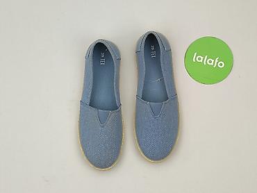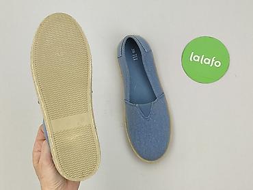 Damskie espadryle z nadrukiem ust – rozmiar 36 - Typ: espadryle slip-on - Rozmiar: 36 (oznaczenie na podeszwie) - Kolor: jasny niebieski - Cholewka: tkanina (canvas) - Nadruk: czerwone usta i graf...