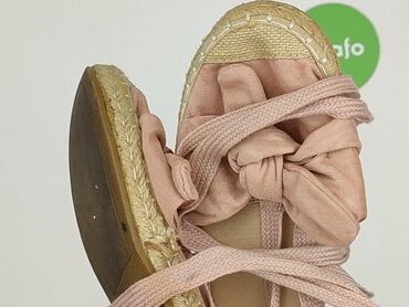 Espadryle damskie z paskiem na kostce - Rozmiar: 38 (oznaczenie na podeszwie) - Styl: espadryle na płaskiej podeszwie - Cholewka: tekstylna, przód z kolorowym, etnicznym wzorem geometrycznym - Zap...