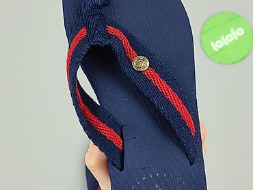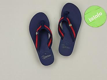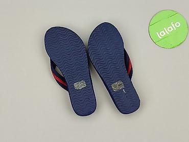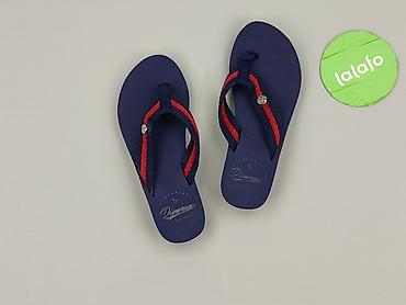 Japonki damskie - Model: klapki japonki z paskami w kształcie „V” - Kolor: granatowa podeszwa ze złotym, słonecznym nadrukiem; paski w kolorze złotym - Rozmiar: 40 (oznaczenie na podeszwie) - Mate...Stan: