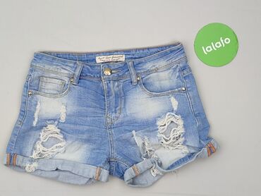 Szorty damskie CROPP – denim z przetarciami - Marka: Cropp - Linia: Regular - Rozmiar z metki: 36 (S) - Model: damskie jeansowe szorty - Kolor: klasyczny jasny/średni niebieski denim - Fason: krót...