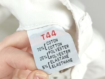 Białe damskie spodnie 3/4 M Jeanswear - Fason: rybaczki/bermudy 3/4, klasyczny krój typu five‑pocket - Rozmiar z metki: 40 - Skład materiału: 97% bawełna, 3% spandex – elastyczne, wygodne i przewi...