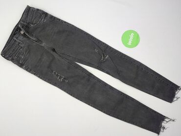 Damskie jeansy Bershka – jasny denim ze spraniami - Marka: Bershka (etykieta wewnętrzna widoczna na zdjęciu) - Model: rurki/skinny z niską/średnią talią - Kolor: jasnoniebieski z wyraźnymi przetar...