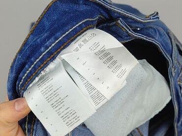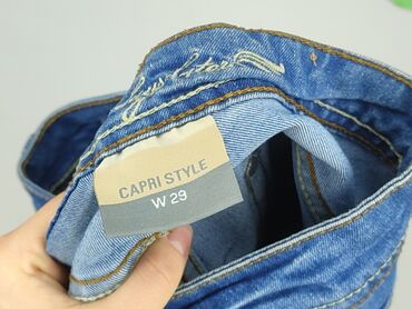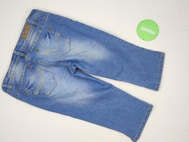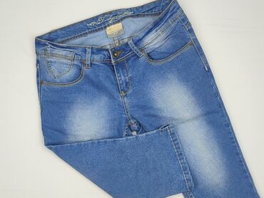 Jeansowe spodnie damskie Colours of the World - Model: 3/4 (rybaczki), prosta nogawka - Rozmiar z metki: 38 - Kolor: niebieski denim z przetarciami/wybieleniami - Krój: klasyczny, z szlufkami na p...
