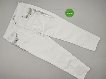 Białe damskie jeansy z ozdobnymi nogawkami - Krój: klasyczne jeansy z 5 kieszeniami, zapięcie na zamek i guzik - Rozmiar z metki: XL - Skład materiału: 98% bawełna, 2% elastan – elastyczne i wygod...