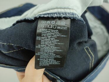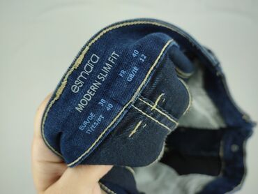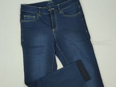 Damskie jeansy Esmara – Slim Fit - Krój: slim fit, dopasowane nogawki - Kolor: ciemny granat (indigo) z kontrastowym, złotym stebnowaniem - Stan w pasie: klasyczny/średni - Zapięcie: guzik + zamek...
