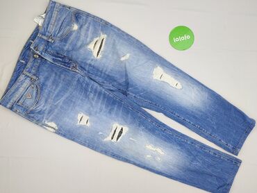 Damskie jeansy marki Guess w odcieniu niebieskiego, z charakterystycznymi przetarciami, które nadają im modny wygląd. Spodnie posiadają klasyczne pięć kieszeni oraz szlufki na pasek. Idealne do cod...Stan: