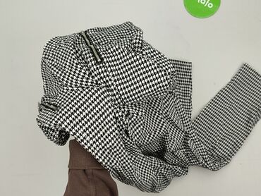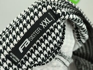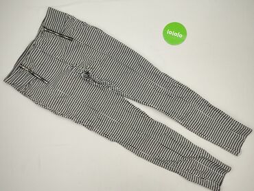 Damskie spodnie FB Sister, rozmiar XS. - Fason: joggery/zwężane nogawki - Wzór: kratka (czarno-szaro-kremowa) typu prince of wales - Lampasy: szerokie, żółte pasy po bokach nogawek - Talia: elasty...