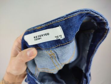 Jeansy damskie Reserved - Fason: zwężane nogawki (slim), wysoki stan - Kolor: klasyczny denim niebieski - Zapięcie: suwak z boku - Kieszenie: dwie z tyłu - Detale: pionowe zaszewki z przodu optycz...