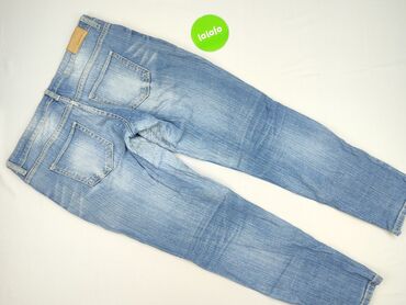 Damskie jeansy marki Amisu w kolorze niebieskim. Spodnie posiadają przetarcia oraz postrzępione nogawki, co nadaje im modny, swobodny wygląd. Idealne do codziennych stylizacji, zapewniają wygodę i ...Stan: