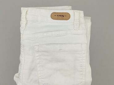 Białe jeansy damskie Sinsay - Fason: skinny, nogawki dopasowane - Stan pasa: mid waist (średni stan) - Rozmiar z metki: 34 - Klasyczny krój 5‑kieszeniowy: dwie kieszenie z tyłu, trzy z przodu (w t...