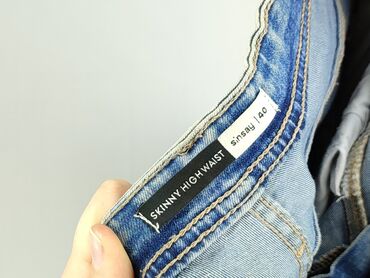 Damskie jeansy Sinsay, rozmiar 40 - Klasyczny fason z pięcioma kieszeniami - Zwężane nogawki (skinny/slim) - Zapięcie na guzik i zamek - Średni stan - Denim w kolorze średniego niebieskiego z deli...