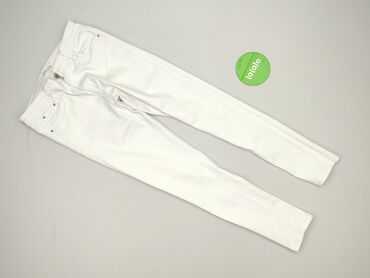 Białe damskie jeansy M.Sara Jeans, rozmiar S. - Fason: dopasowane rurki - Wysoki stan - Z przodu ozdobne panele z małymi, metalicznymi nitami/perłowymi dżetami - Zapięcie: zamek błyskawiczny + guz...