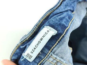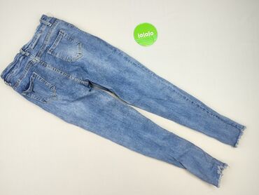 Jeansy damskie SZACHOWNICA, rozmiar S. - Krój: dopasowany, rurki/skinny - Stan: średni (mid waist) - Kolor: jasny niebieski denim z przetarciami i delikatnym “destroyed” (dziurka na prawym kolanie...