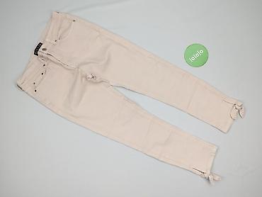 Damskie spodnie jeansowe w kolorze jasnego beżu/ecru. - Krój: klasyczny, dopasowany, zwężane nogawki - Stan w pasie: średni - Zapięcie: suwak + metalowy guzik - Kieszenie: 5 (dwie z przodu + mała ...