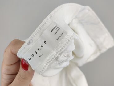 Białe jeansy damskie Topshop Moto JAMIE - Krój: skinny, dopasowane nogawki - Stan: średni - Kolor: biały - Rozmiar z metki: W30 L32 (talia 76 cm, długość nogawki 81 cm) - Materiał: 91% bawełna, 6%...