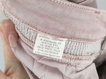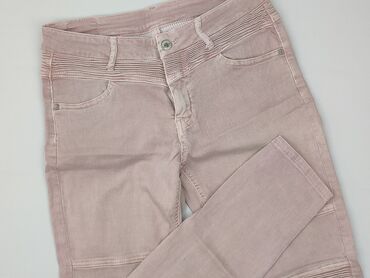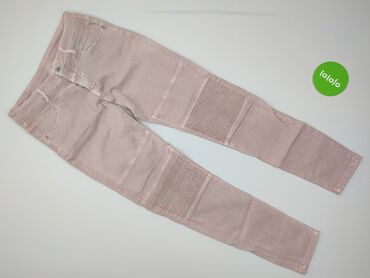 Różowe rurki damskie GOODIES – rozmiar 36 - Fason: slim/rurki, średni stan - Kolor: pudrowy róż (jednolity) - Zapięcie: guzik metalowy + zamek - 5 kieszeni (trzy z przodu, dwie z tyłu) - Szlufki n...