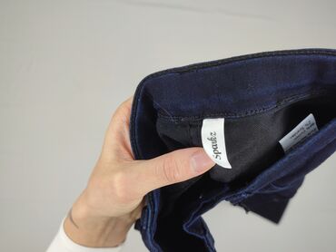 Damskie jeansy skinny - Fason: skinny, dopasowane na całej długości nogawki - Kolor: klasyczny ciemny granat z delikatnym spraniem - Stan wykończenia: kontrastowe, beżowe przeszycia; pięć funkcjon...
