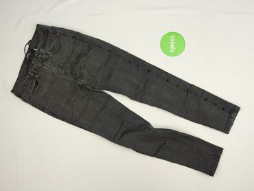 - Ozdoby: czarne, połyskujące nity wzdłuż bocznych szwów na całej długości nogawek