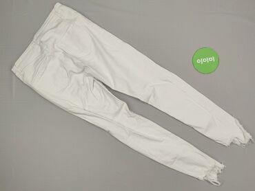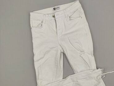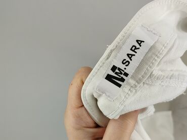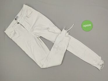Białe damskie jeansy M.Sara Jeans, rozmiar S. - Fason: dopasowane rurki - Wysoki stan - Z przodu ozdobne panele z małymi, metalicznymi nitami/perłowymi dżetami - Zapięcie: zamek błyskawiczny + guz...