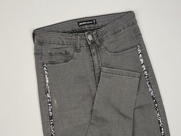 Jeansy damskie CROPP #DENIM - Kolor: szary/graphite, delikatnie sprany efekt - Fason: dopasowany (skinny), zwężane nogawki - Stan bioder: klasyczny/średni - Zapięcie: suwak i guzik - Kieszenie: 5 ...Szare damskie jeansy Cropp #DENIM, rozmiar 36/S.