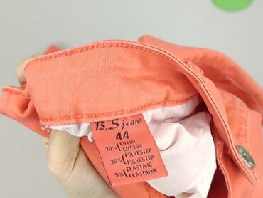 Uniwersalne, lekkie spodnie idealne na co dzień – łączą komfort bawełny z elastycznością elastanu, dobrze dopasowują się do sylwetki i podkreślają nogi. Żywy koralowy kolor dodaje stylu w wiosenno-letnich stylizacjach. Marka: B.S. Jeans (metki widoczne na zdjęciach).
