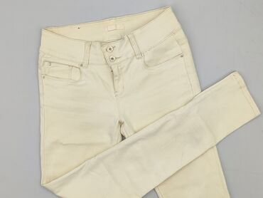Damskie spodnie Sinsay - Model: rurki/skinny - Rozmiar z metki: 34 - Kolor: jasny beż/krem - Stan: używane - Fason z wysokim stanem, zapięcie na suwak i guzik - 5 kieszeni: dwie z przodu, mała kie...