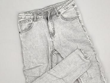 Szare damskie rurki XS - Fason: skinny/rurki, średni stan - Materiał: 98% bawełna, 2% elastan – miękkie, elastyczne i wygodne - Kolor: jasnoszary, delikatny sprany efekt - Detale: zdobienia z meta...