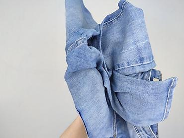 - Kolor: jasny niebieski, delikatny sprany efekt z subtelnymi przetarciami