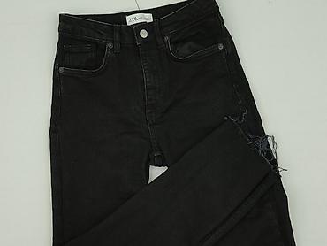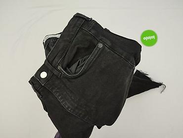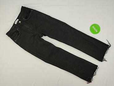Minimalistyczne czarne jeansy idealne do codziennych stylizacji i na wieczór; świetnie wyglądają z botkami lub trampkami, a surowe wykończenie nogawek dodaje im modowego charakteru. Dla kobiety. Używane. Stan: bardzo dobry.