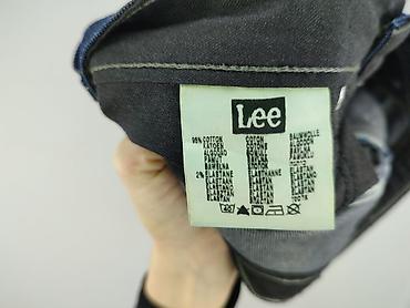 - Detale: kontrastowe przeszycia, skórzana naszywka Lee na tylnej części pasa, metalowe nity