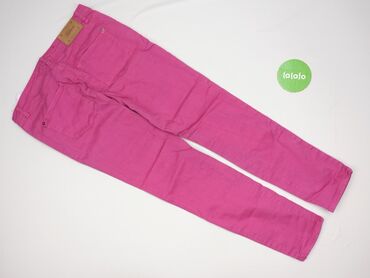 Różowe spodnie damskie typu jeans - Krój: klasyczny 5 kieszeni (dwie z przodu + kieszonka biletowa, dwie z tyłu z ozdobnym przeszyciem) - Zapięcie: guzik i zamek - Rozmiar z metki: 30–31/32 (suger...