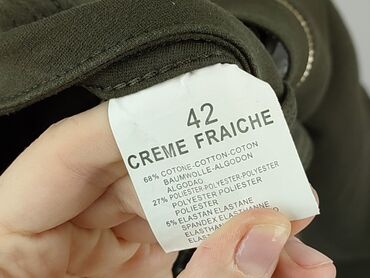 Spodnie damskie – khaki/oliwkowe - Krój: klasyczne, prosta nogawka - Stan zapinania: guzik + zamek z przodu - Talia: częściowo elastyczna z tyłu (gumka), szlufki na pasek - Kieszenie: 5 (dwie prze...