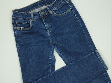 Granatowe rurki damskie, rozmiar S - Fason: slim/skinny, zwężane nogawki - Kolor: ciemny granat - Stan wykończenia: klasyczne pięć kieszeni (2 z przodu + kieszonka zegarkowa, 2 z tyłu) - Zapięcie:...