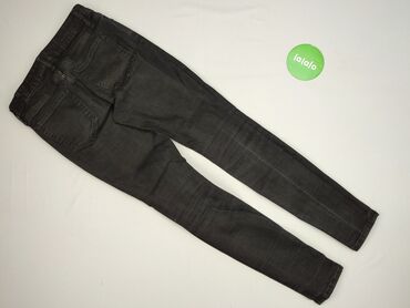 Czarne jeansy damskie skinny - Rozmiar: XS (z metki) - Fason: dopasowane rurki/skinny, nogawki zwężane - Stan zapinania: potrójny guzik + suwak z przodu - Kolor: czarny z delikatnym spraniem - Kie...